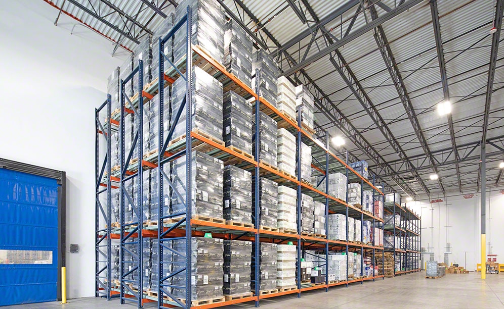 La bodega está formada por 31 pasillos con racks selectivos de simple profundidad a cada lado. Miden 9 m de altura (con cuatro a siete niveles) y dan cabida a 9.200 pallets GMA de 1.000 x 1.200 mm.