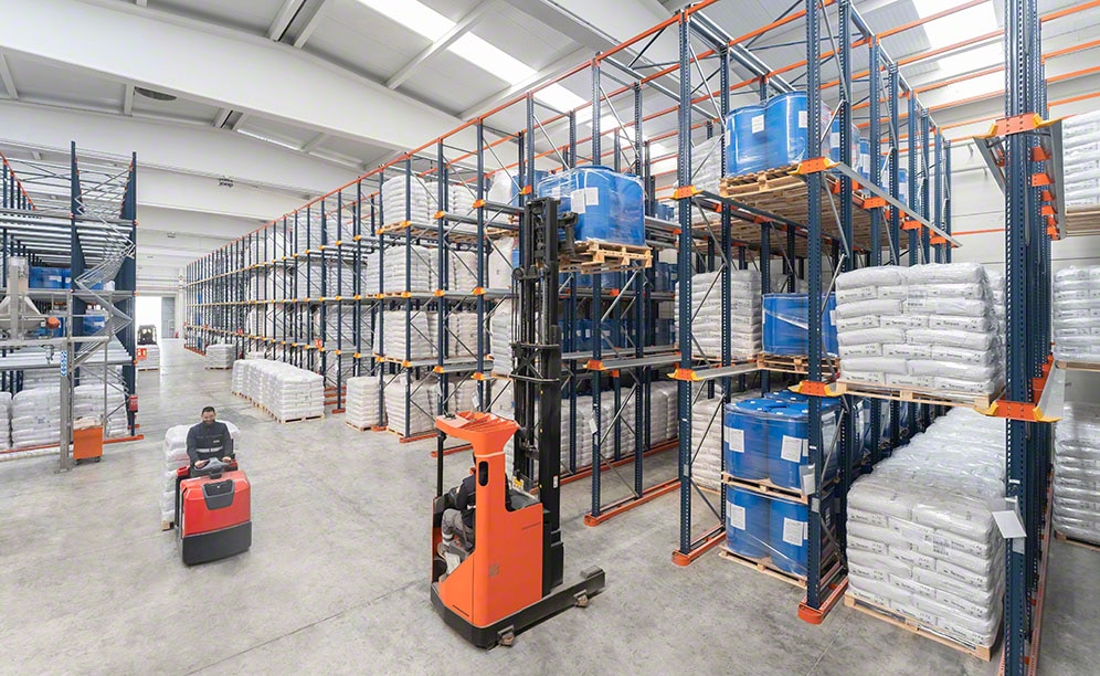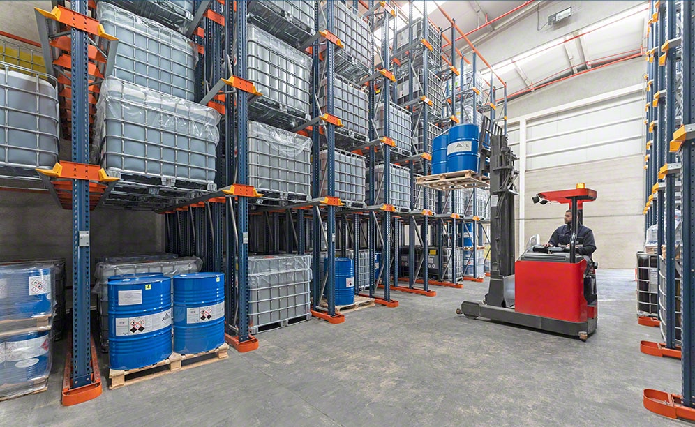 Al gestionar más de 1.000 referencias de productos químicos y a fin de cumplir con el reglamento de seguridad contraincendios en los establecimientos industriales, el centro logístico está sectorizado, destinando cada sector a los productos de un cliente concreto. El centro se ha ampliado en varias ocasiones con el propósito de aumentar la superficie de almacenaje e incorporar nuevos procesos que les ayuden a ser más competitivos.